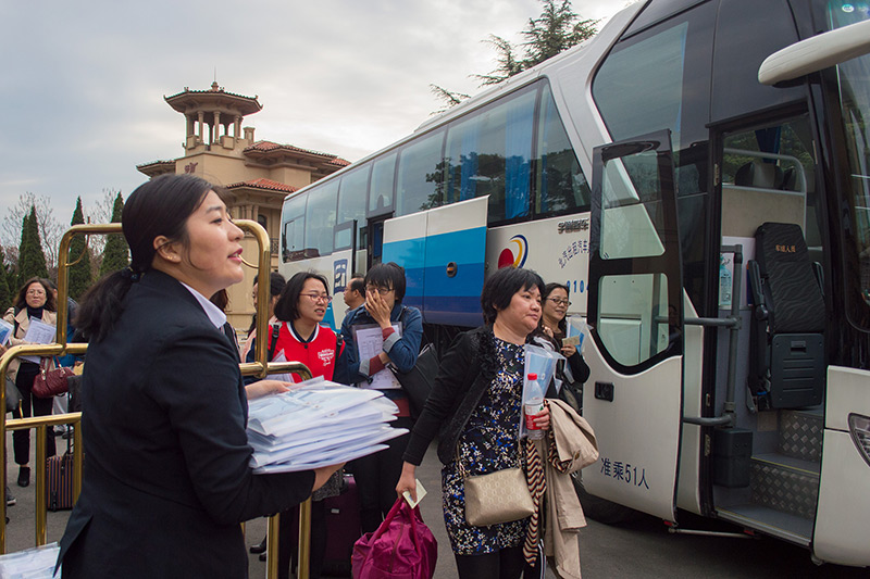 23日,學(xué)員們紛紛匯聚到北戴河礦工療養(yǎng)院,領(lǐng)取材料,安排入住,開始了為期兩天半的集中學(xué)習(xí)交流。圖為療養(yǎng)院的工作人員正協(xié)助分發(fā)培訓(xùn)材料。